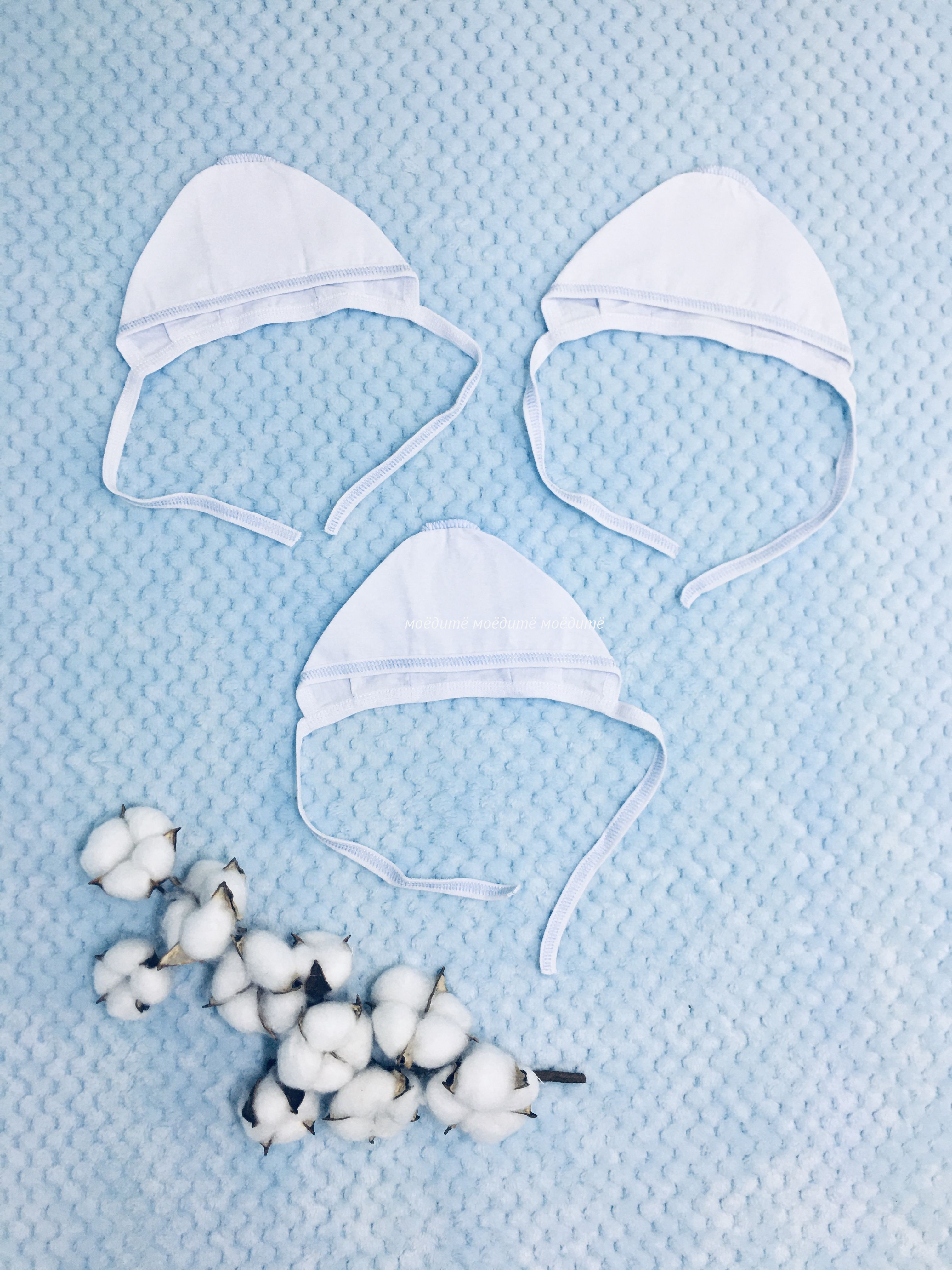 "МоёДитё" чепчик кулирка белый с голубым ЧК015 "Гардения" в Тамбове